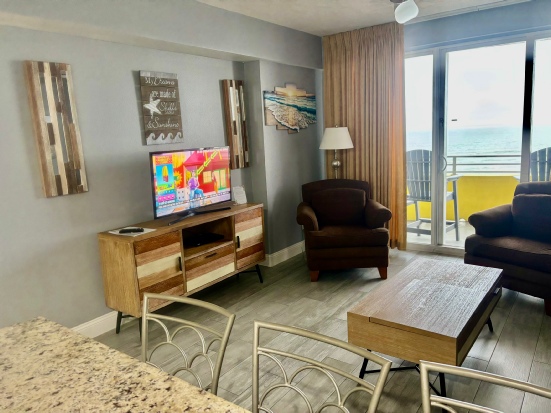 Full Kitchen Refrigerator w/ Ice maker Stove (4 Burners) & Oven Microwave Dish Washer Plates, Glasses, Utensils, Cookware Washer/dryer Toaster Blender Ironing Board Living Room Direct Ocean Front w/Balcony Sofa/Queen Pullout Bed Cable TV 1 Bedroom Condo 1 King 1 Full Size Size beds in the bedroom Sleeper sofa in Living Room linens, washcloths & Towels, hair dryer Resort Features Outdoor Swimming Pools Indoor Swimming Pools Kids Program - "get Out & Play" Fun Activities Beach Exercise Equipment Outdoor Hot Tubs Restaurant Game Room Indoor Put-Put Golf Lazy River and Water Slide Wireless Internet in the Main Lobby No Pets Allowed |